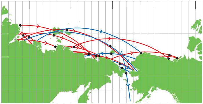 Berings sund, mellan den amerikanska och asiatiska kontinenten, är som en stor vägkorsning för många flyttfåglar i Arktis.