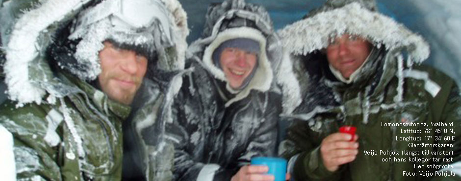 – Man pulsar i snö ena dagen och knackar kod nästa, det är ett väldigt varierande jobb, säger Veijo Pohjola och skrattar. Själv arbetar han med isdynamik och registrerar bland annat hur glaciärer rör sig. Därför måste han färdas långa sträckor uppe på glaciärerna för att kontrollera, med hjälp av en särskilt noggrann typ av GPS, hur mycket hans nedborrade mätpinnar flyttar sig. Kollegorna som undersöker glaciärernas massbalans , använder sig av isradar (en slags ekolod) för att avgöra glaciärens tjocklek, hur djupt det senaste snölagret är och hur mycket av isen som smälter under sommaren. Forskarna tar också hjälp av mätstationer som placeras ut vid kanten av glaciären för att registrera väderdata i den zon där isen smälter under sommaren. Uppgifterna används sedan för att tillverka datormodeller för hur glaciärerna rör sig och hur de förändras i ett varmare klimat, nu och i framtiden.