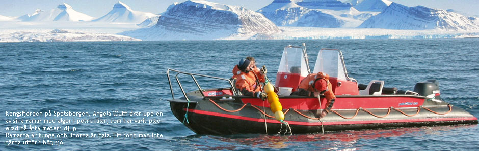Angela Wulff bedriver sin forskning vid båda polerna. I Ny Ålesund på Spetsbergen samarbetar hon med norska forskare och samlar in alger i Kongsfjorden. På King George Island i Antarktis, jobbar hon från en tysk-argentinsk bas. Många av algerna som Angela Wulff undersöker finns på sandkorn på mjuka sedimentbottnar, andra håller till i kanten av havsisen. En del finns helt nära stranden och där isen spruckit upp vadar Angela Wulff runt, iklädd överlevnadsdräkt, och gräver försiktigt upp små spadtag från havsbotten.